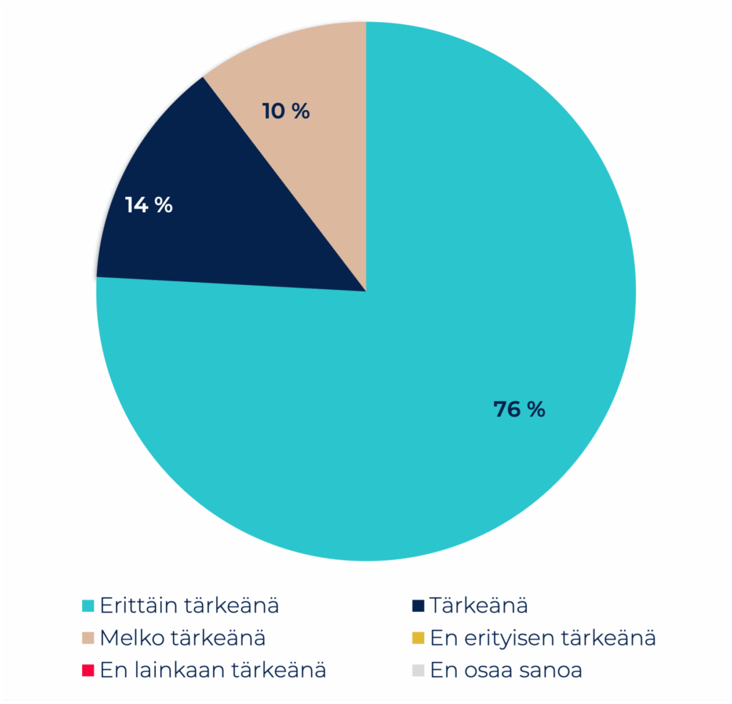 Kysymykseen vastasi 29 panelistia, joista 83 % arvioi tutkimuksen ja seurannan erittäin tärkeäksi tai tärkeäksi. Yksikään vastaaja ei pitänyt asiaa merkityksettömänä (kuva 2).